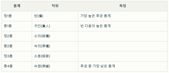 정1품 빈(嬪)과 종1품 귀인(貴人)