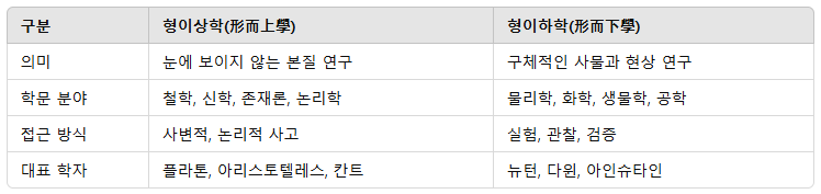 3. 형이상학과 형이하학의 차이점