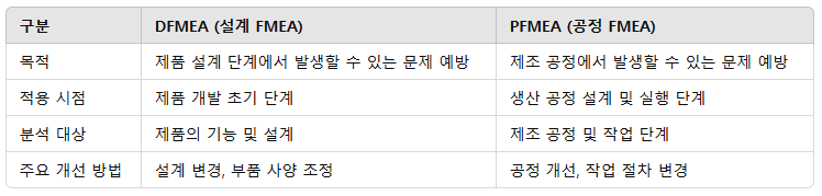 DFMEA vs. PFMEA 차이점
